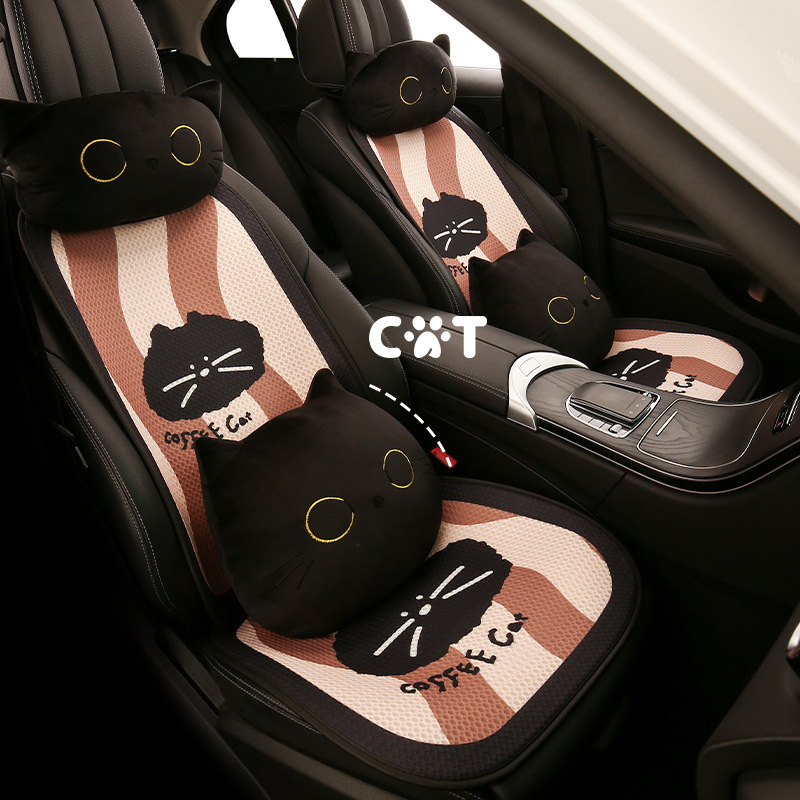 新款卡通猫网红汽车坐垫四季通用女士防滑座椅套透气凉垫单片座垫