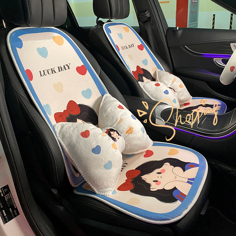 Bantal mobil putri lucu kartun, penghangat mobil mewah musim dingin bantal kursi satu potong set tiga potong untuk wanita