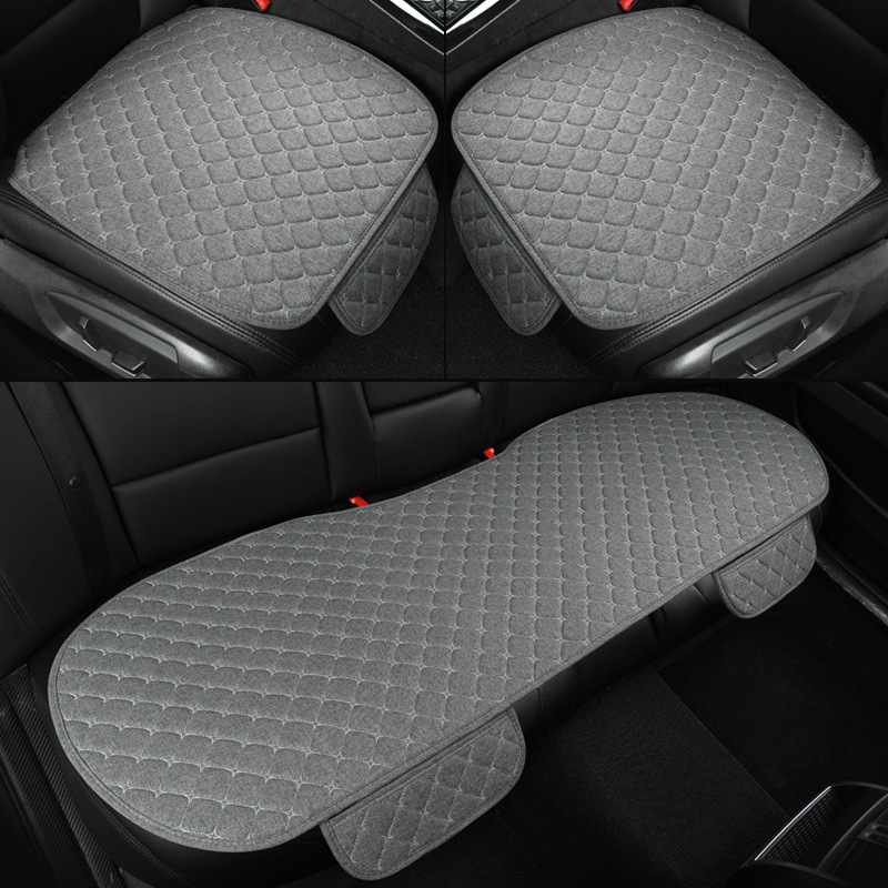Bantal kursi mobil empat musim universal, bantalan pelindung kursi tunggal sederhana, kain bersirkulasi tiga potong, linen universal empat musim