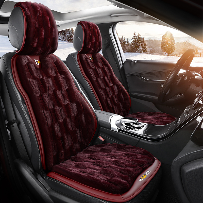 Sarung kursi mobil mewah, penutup kursi mobil merah cerpelai beludru tebal hangat pinggang kecil satu potong