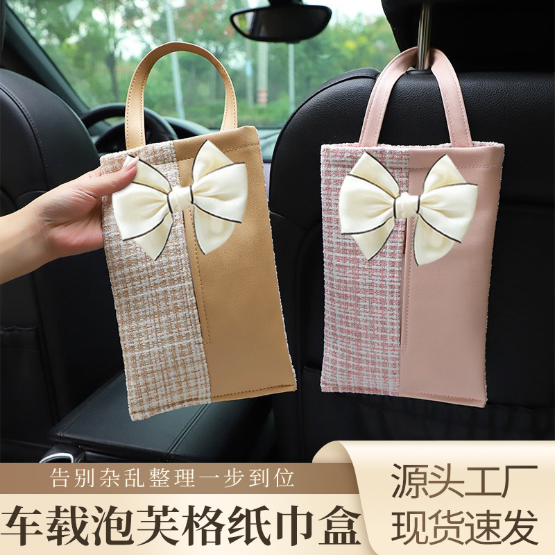车载泡芙格纸巾盒个性车用座椅靠背挂式收纳抽纸袋汽车内饰装饰盒