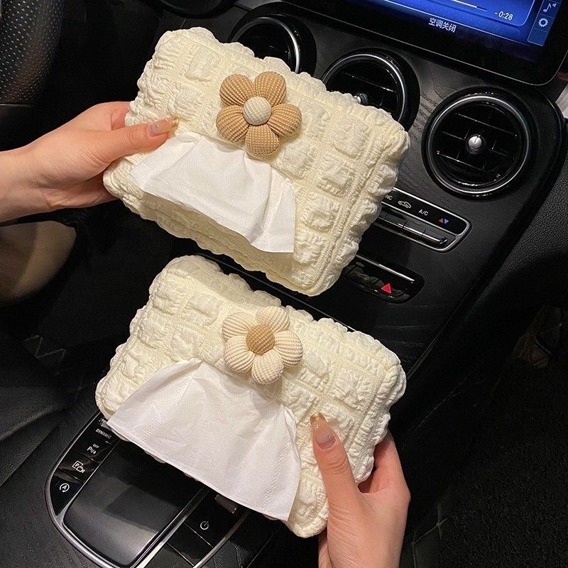 Kotak tisu jaring merah untuk wanita, kotak tisu jaring tangan, tas penyimpanan visor matahari lucu, kotak tisu tinggi untuk wanita