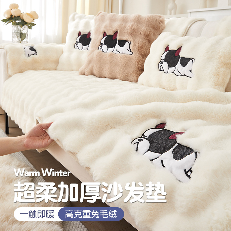 Alas Sofa Ekstra Tebal Desain Bordir Kelinci Alas Duduk Anti Licin Tetap Hangat Musim Dingin Sarung Sofa Musim Gugur Musim Dingin Beludru Hangat Grosir