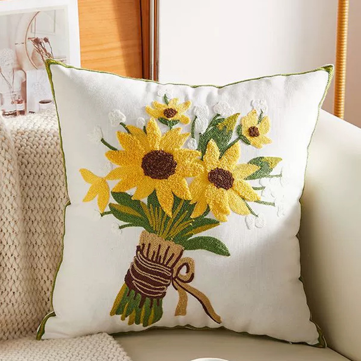 Sarung Bantal Sulam Bunga Gaya INS Alas Sandaran Eropa Utara Sarung Bantal Sandaran Sofa Ruang Tamu Lucu Sarung Bantal Pinggang Bantal Pinggang Kepala Tempat Tidur