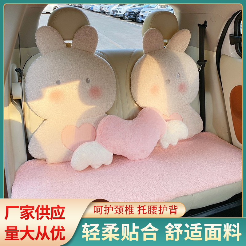 Bantal mobil musim dingin, bantal kelinci lucu, hangat, Kartun cinta kelinci, bantal kursi, bantal pinggang cinta, bantal universal