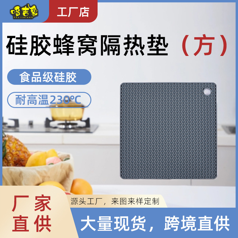 Cross-border alas mangkuk silikon sarang lebah persegi, keset meja tahan suhu tinggi anti licin ukuran kecil multifungsi