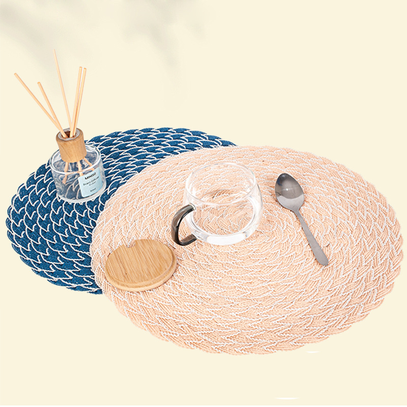 Alas meja makan Nordic, tiga untai katun rami tebal meja makan isolasi tatakan multi-fungsi tatakan piring mangkuk tenun