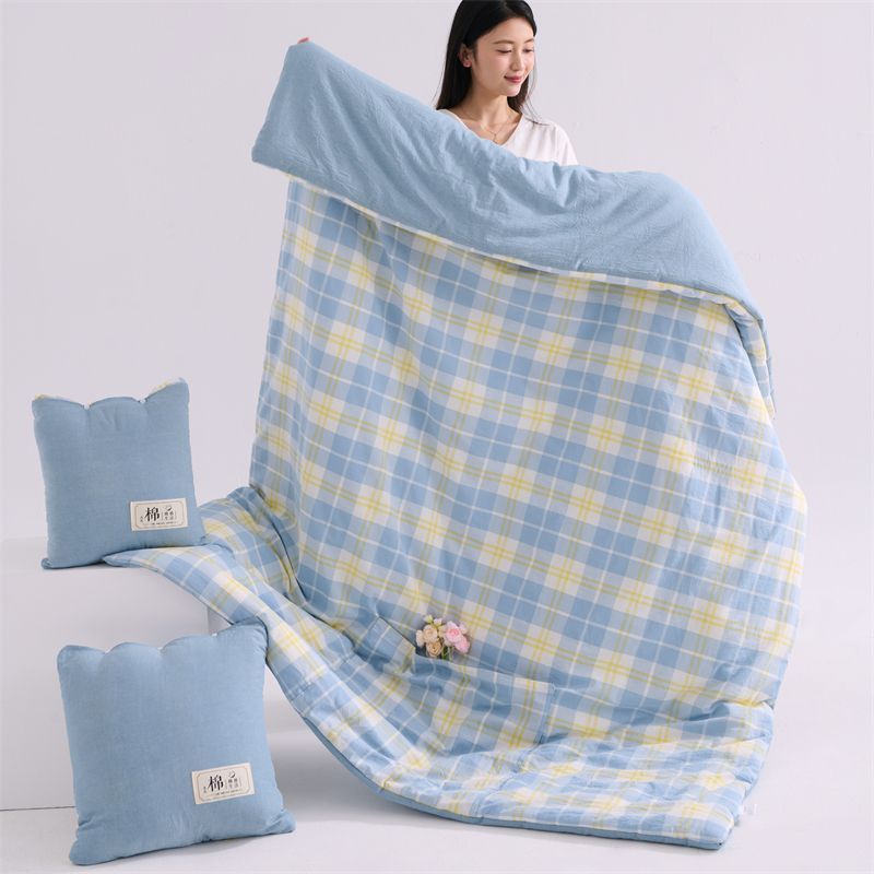 Bantal Tenun Katun Murni Bantal Sofa Mobil AC Istirahat Makan Siang Multifungsi Kantor Selimut Musim Panas Penggunaan Ganda
