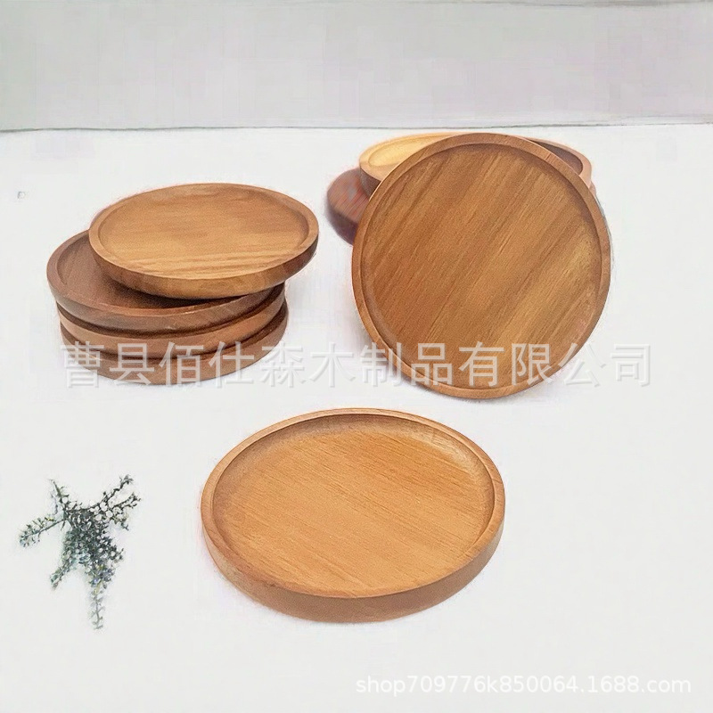 Alas Cangkir Kayu Akasia Alas Cangkir Teh Isolasi Panas Bentuk Bulat Banyak Penggunaan Alas Cangkir Kopi Rumah Tangga Kayu Solid