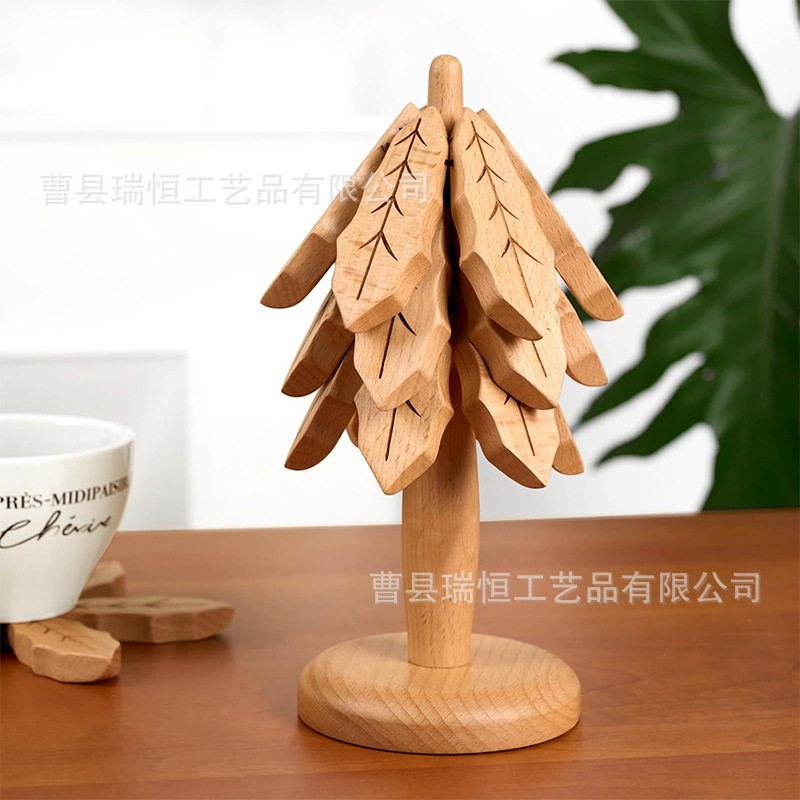 Alas Isolasi Panas Kayu Kreatif Alas Cangkir Pohon Natal Alas Pot Pasir Multifungsi Alas Meja Makan Pohon Kayu Solid Rumah Tangga