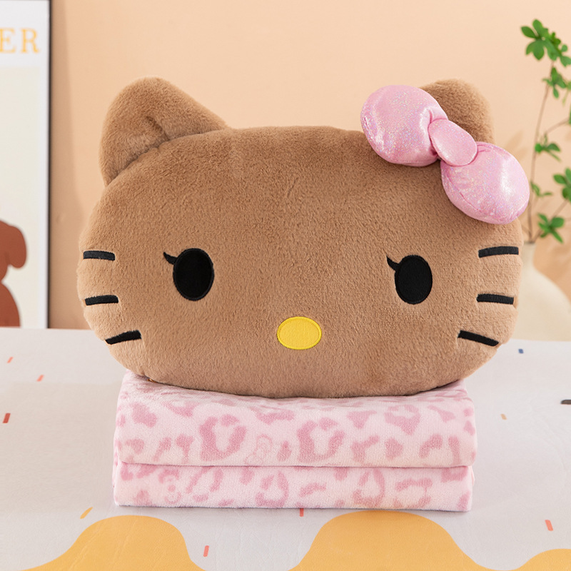 可爱黑皮豹纹kitty抱枕被子两用办公室午睡毯子汽车靠枕毛毯二合