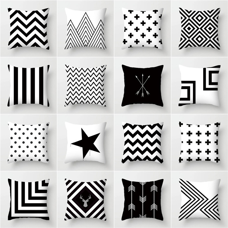Nordic ins sarung bantal geometris hitam dan putih, bantal ruang tamu sandaran pinggang sandaran penggunaan ganda dapat dilepas dan dicuci