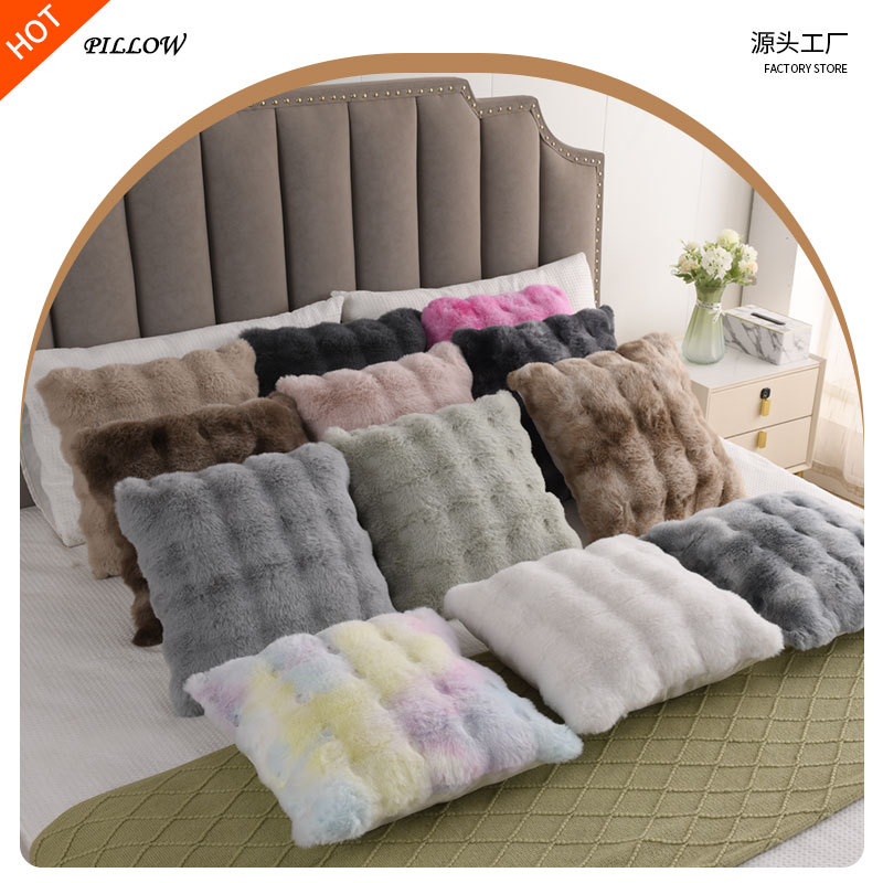 Bantal mewah seperti kelinci, bantal sofa ruang tamu, bantal jendela kamar tidur, Bantal warna solid, bantal penggunaan ganda, beludru gelembung