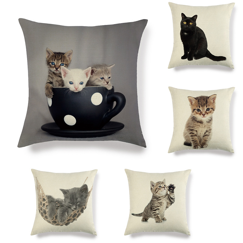 Sarung bantal sofa linen kucing imut gaya sederhana sarung bantal sofa populer lintas batas 430