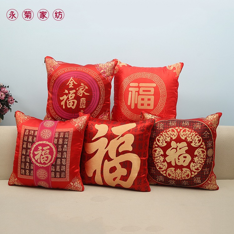 Selimut bantal penggunaan ganda karakter fu meriah merah selimut AC mobil lima Fu linmen hadiah bantal sofa kreatif
