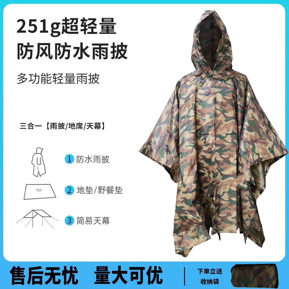 Jas hujan portabel luar ruangan, jas hujan tiga dalam satu, mendaki, ponco multifungsi, bepergian, ransel portabel, tikar Anti lembab