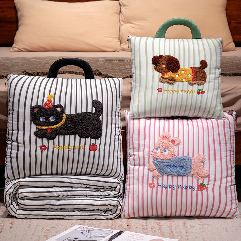 Quan bantal sofa gaya Korea, selimut kapas berlapis penggunaan ganda bordir mobil kantor tidur siang bantal sofa