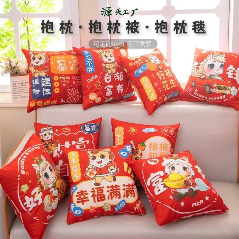 Bantal Tahun Naga LOGO kustom 2024 bukaan Tahun Baru Bank merah hadiah asuransi bantal selimut penggunaan ganda