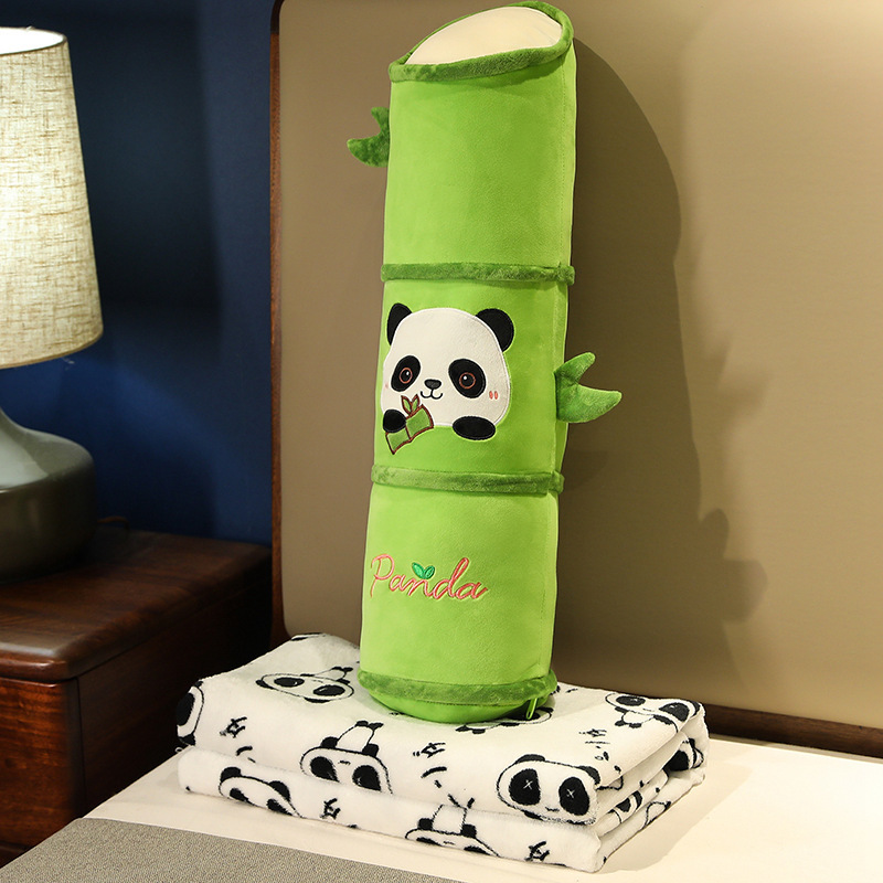 Selimut bantal kartun bambu panda penggunaan ganda selimut istirahat makan siang dua dalam satu bantal jepit kaki tidur panjang tabung bambu panda