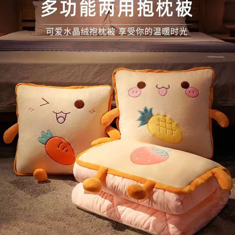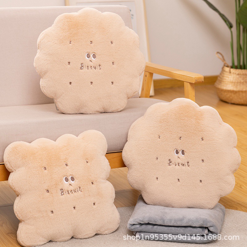 Bantal Peluk Biskuit Mentega Lucu Model Baru Bantal Sofa AC Dua Penggunaan Bantal Selimut Tidur Siang Kantor Lipat Grosir