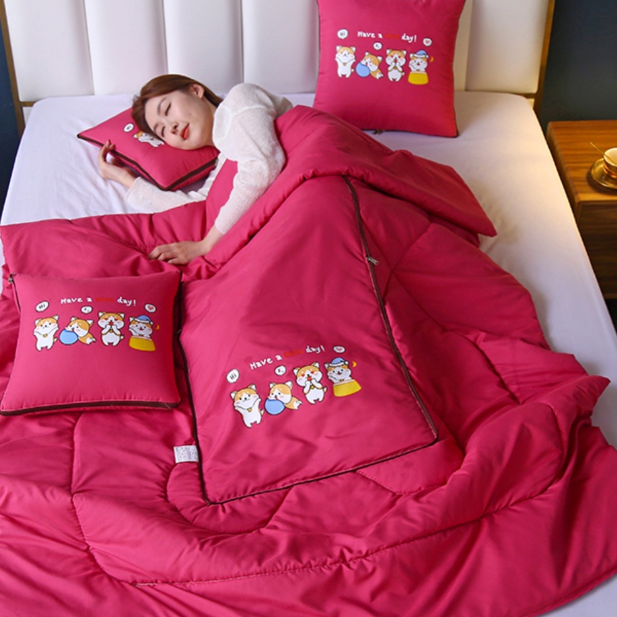 Produksi pabrik bantal selimut bantal cetak digital selimut quilt bantal penggunaan ganda bantal pinggang bantal punggung penopang pinggang dua dalam satu