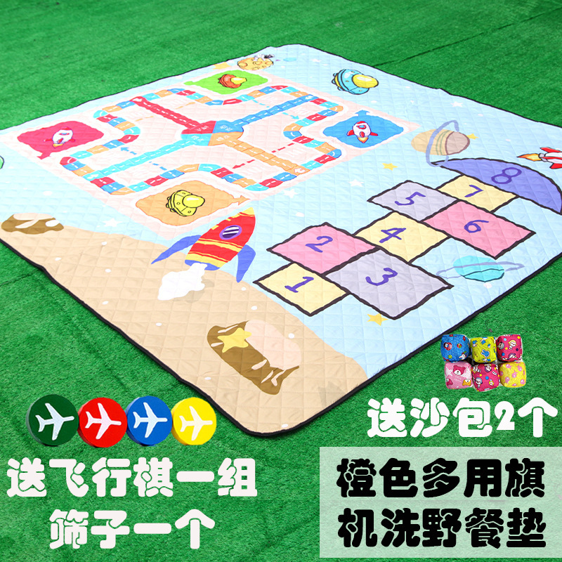 Alas piknik tiga lapis ultrasonik catur terbang alas anti lembab dapat dicuci dengan mesin alas tenda super tebal alas kartun alas lantai wisata ungu