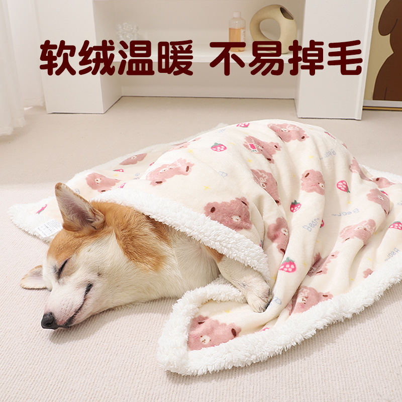 Selimut hewan peliharaan Corgi, penutup anti dingin tidur musim dingin penggunaan ganda, tikar kartun lapisan ganda tebal, selimut hangat
