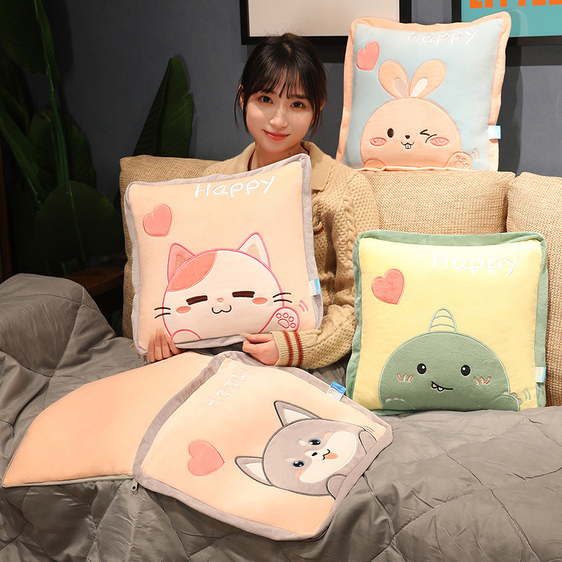 Bantal hewan kartun selimut penggunaan ganda bantal tidur siang kantor bantal mobil bantal mobil dua dalam satu bantal mobil