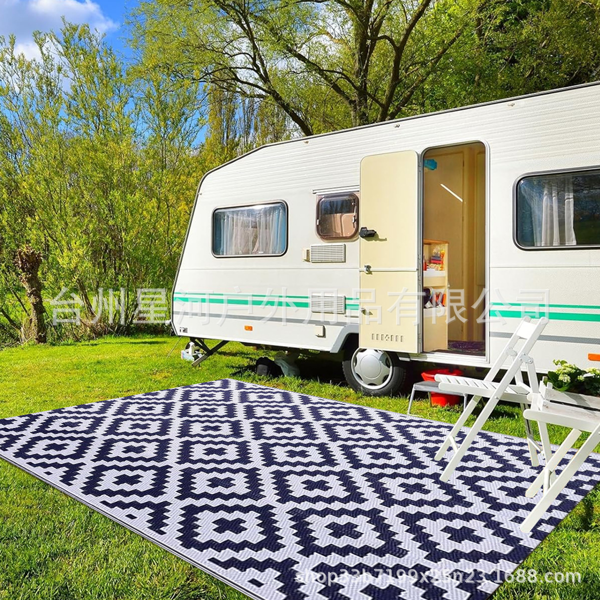Matras anyaman tabung PP untuk perlengkapan berkemah, matras luar ruangan serbaguna, matras RV, matras teras, anti selip, tahan aus, dapat dilipat