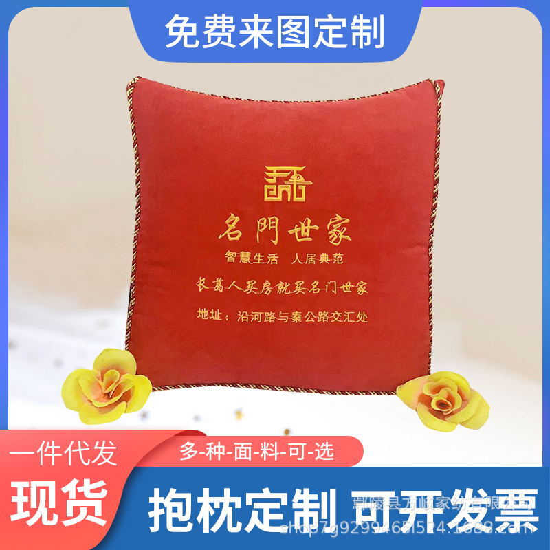 Bantal iklan logo tetap bordir hadiah real estate selimut bantal penggunaan ganda hadiah gambar promosi perusahaan