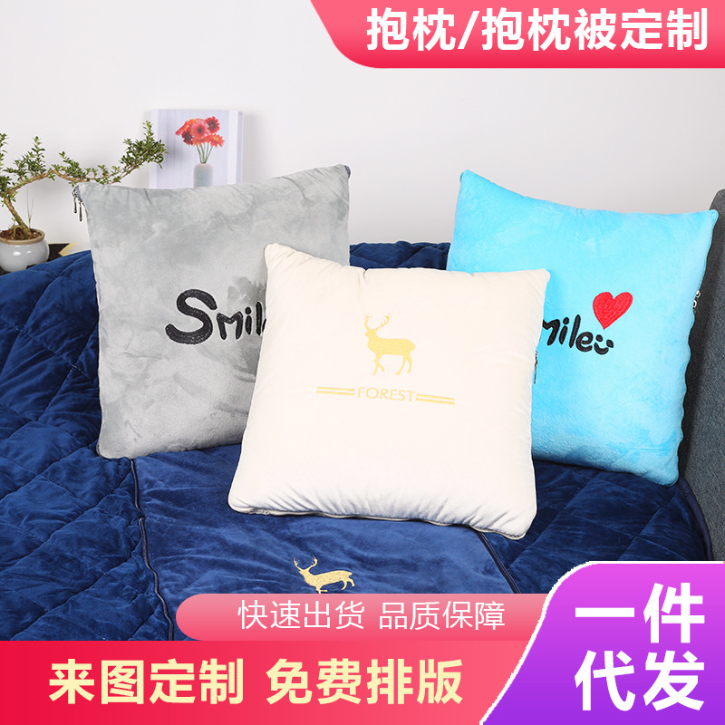 Bantal hadiah disesuaikan selimut digunakan ganda bantal bantal dua dalam satu logo bordir sofa mobil sarung bantal musim dingin