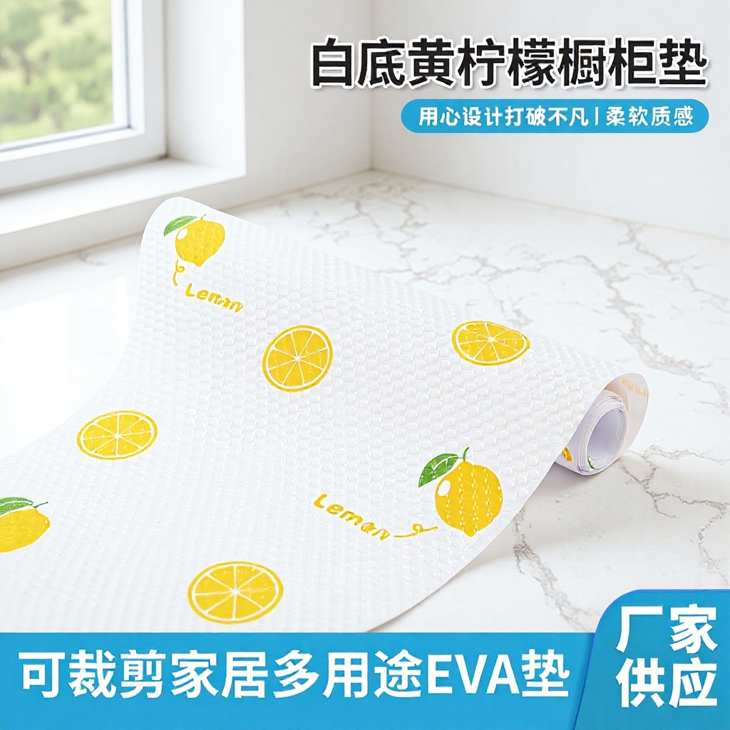 Tikar tahan debu rumah tangga multifungsi tikar laci cetak lemon kuning latar belakang putih tikar EVA sederhana modern grosir