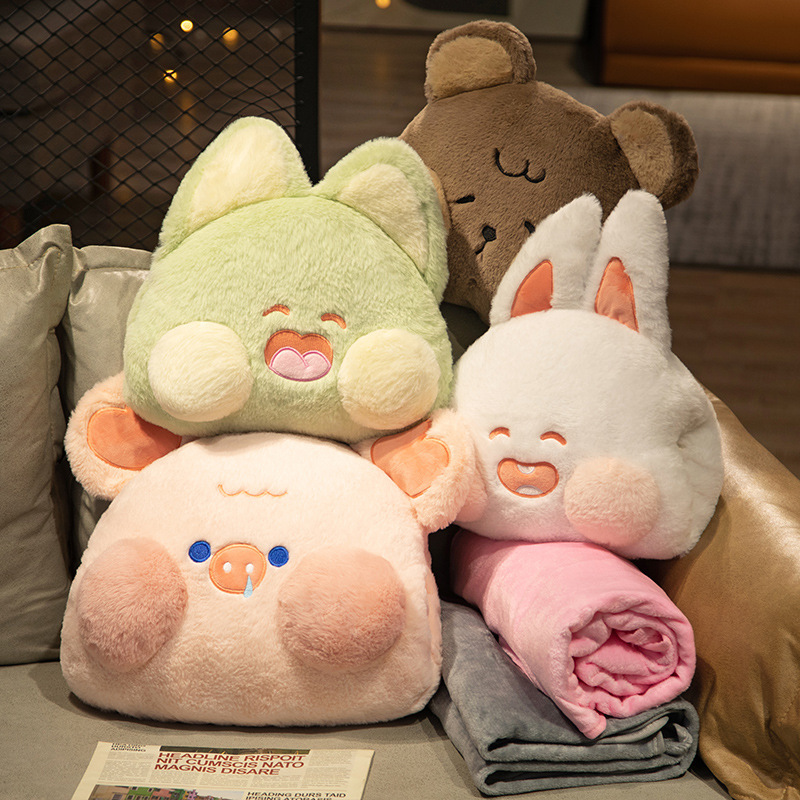 Bantal tidur siang lucu kartun gaya Jepang selimut AC bantal penggunaan ganda bantal selimut tidur siang kantor