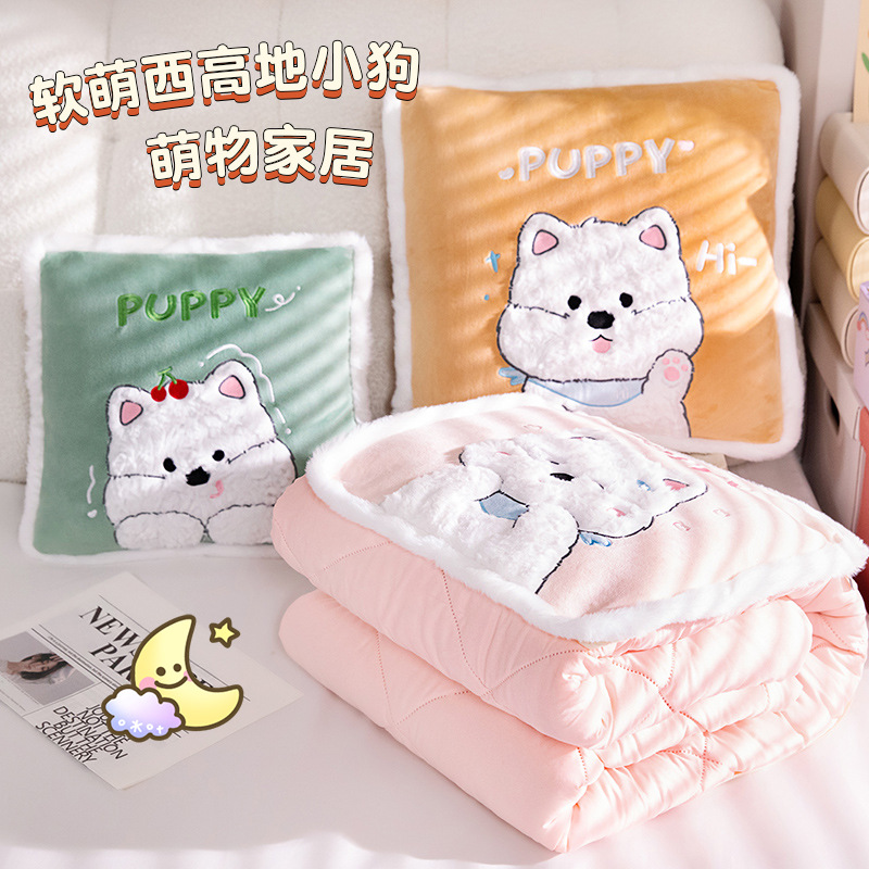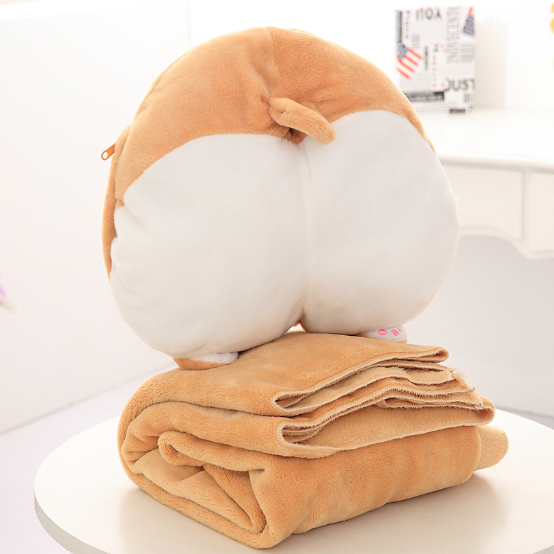 Bantal tidur siang Corgi, selimut penggunaan ganda, bantal pinggang beludru karang, selimut AC, tiga dalam satu