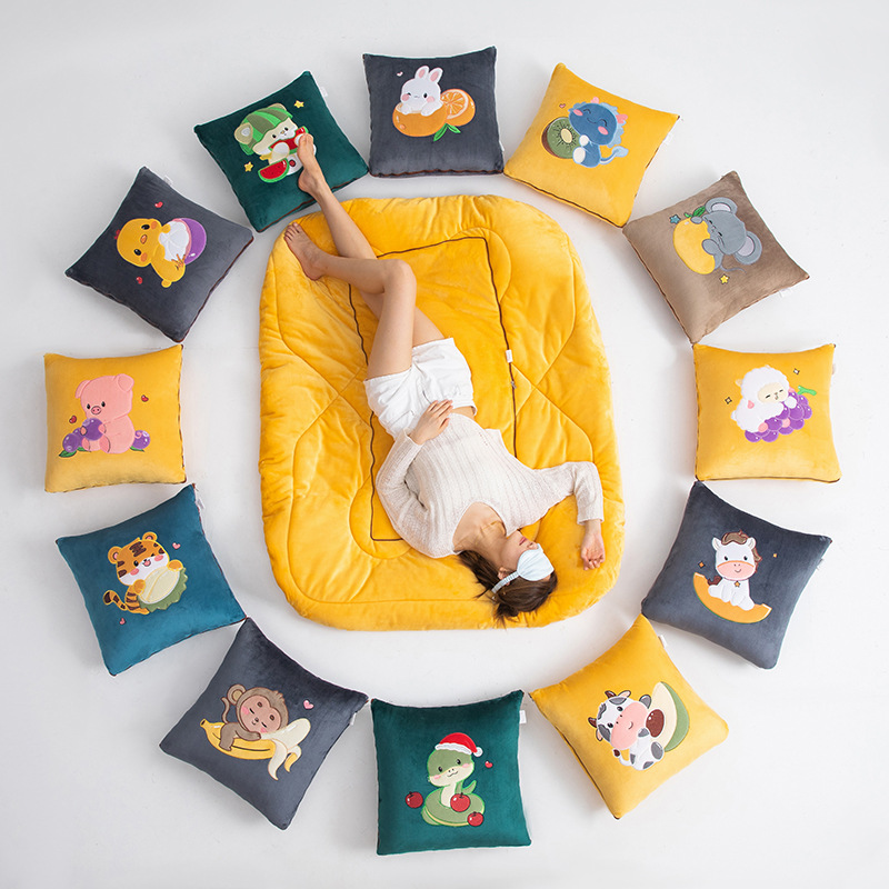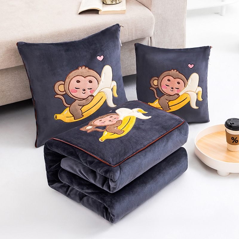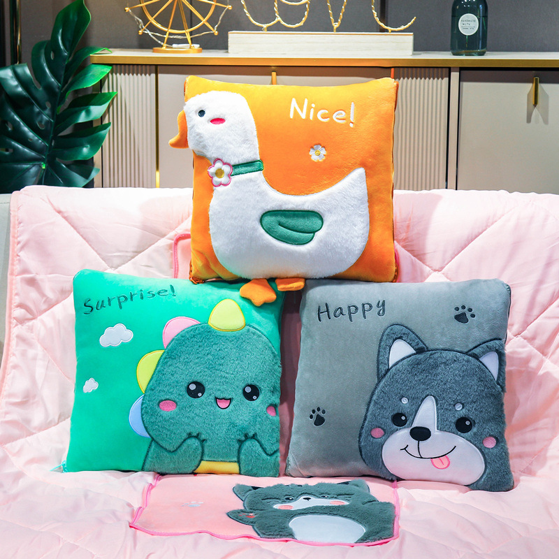 Selimut bantal motif kartun, sofa kantor, penggunaan ganda, selimut AC, bantal dekorasi samping tempat tidur, selimut dua dalam satu