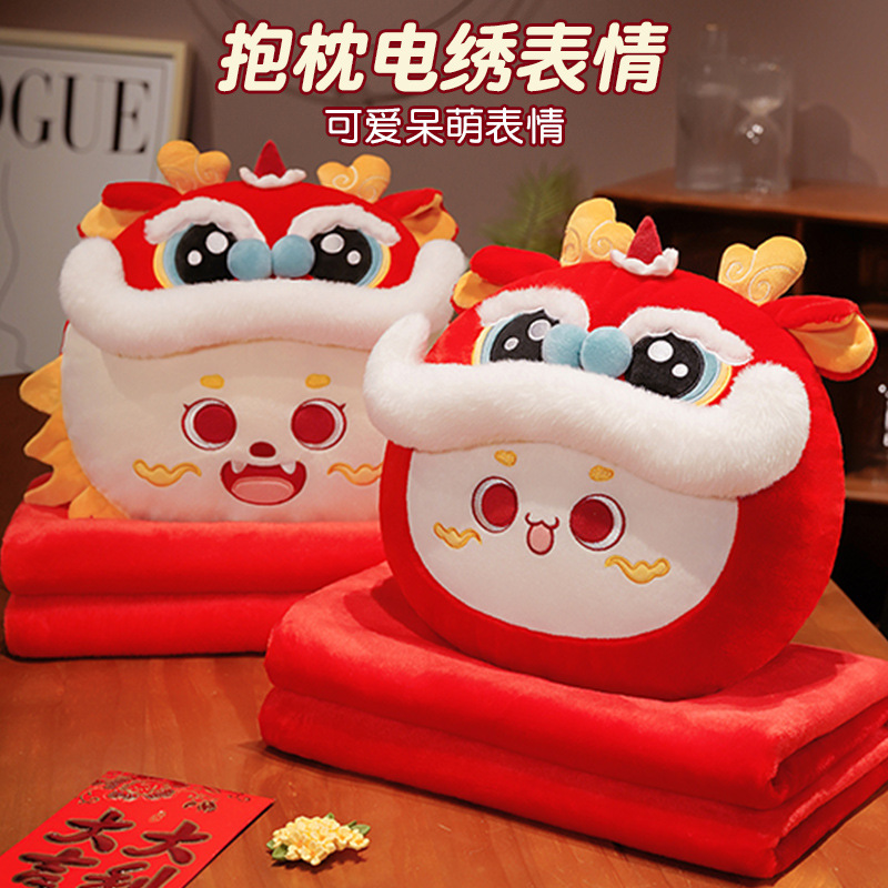 Xingshi bantal Tahun Naga bantal maskot kantor boneka kartun bantal Tahun Baru selimut penggunaan ganda dua dalam satu