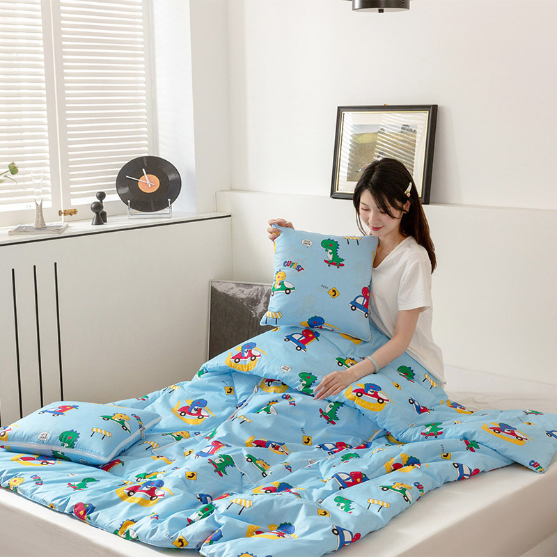 Bantal Peluk Kantor Katun Murni Bantal Sandaran Makan Siang Kartun Mobil Dua Penggunaan Bantal Asrama Siswa Lipat Selimut AC