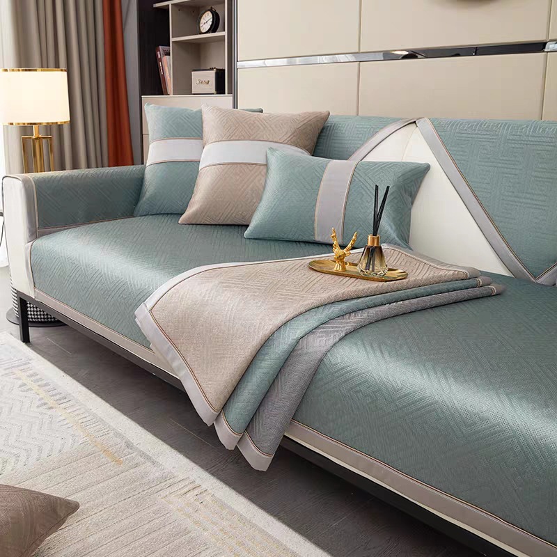 Grosir Musim Panas Bantal Sofa Sutra Es Bantal Alas Tikar Anti Licin Bantal Musim Dingin dan Musim Panas Dua Penggunaan Penutup Sofa Gaya Mewah Ringan Sederhana