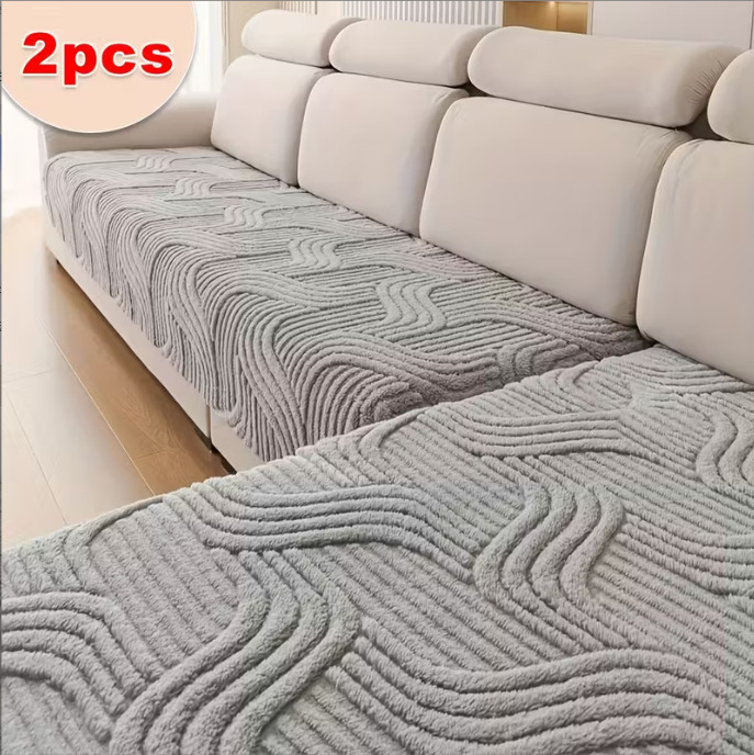 Alas Sofa Beludru Gaya Krim Khusus Lintas Batas Musim Gugur dan Musim Dingin Alas Duduk Tebal Model Baru 2025 Penutup Sofa Anti Licin Kain Penutup