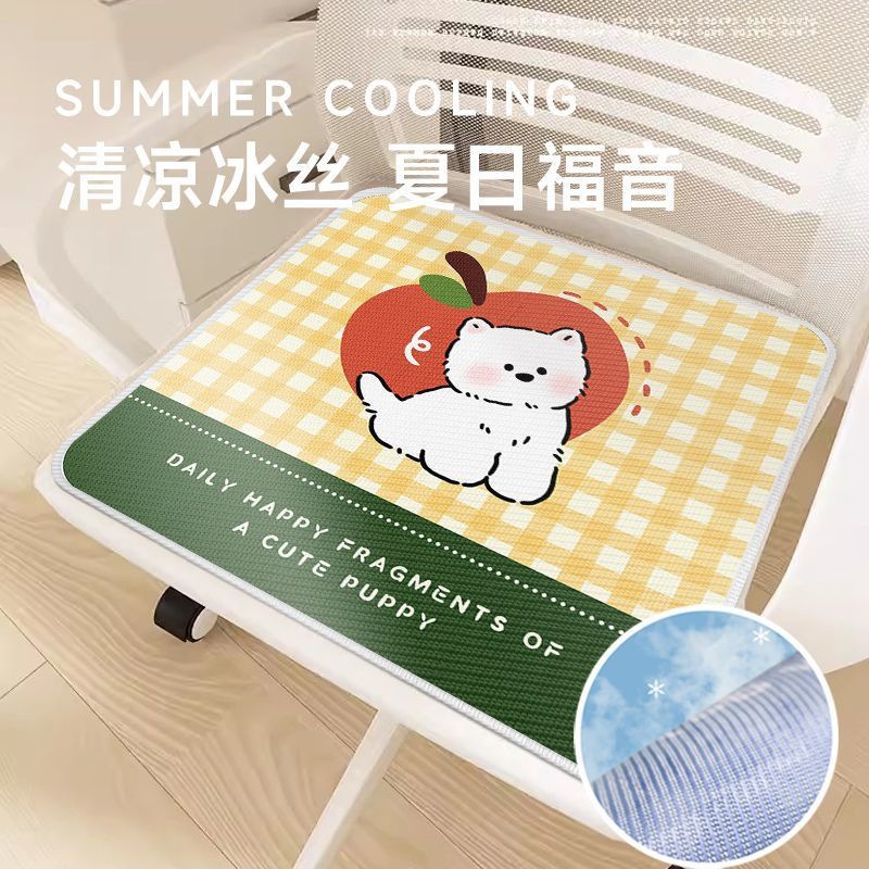Alas Duduk Sutra Es Anak Anjing Kartun Alas Kursi Anti Licin Bernapas Siswa Alas Duduk Universal Empat Musim untuk Kantor