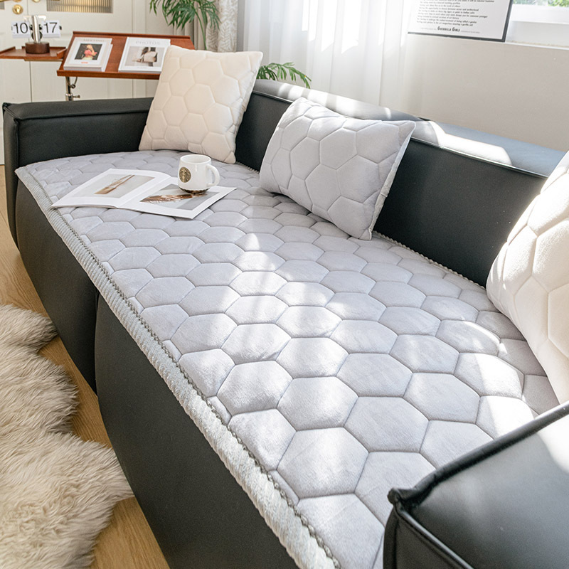 Bantal sofa beludru sarang lebah grosir, bantal gaya ins tebal musim dingin, sarung sofa kulit antiselip, kain penutup mewah baru