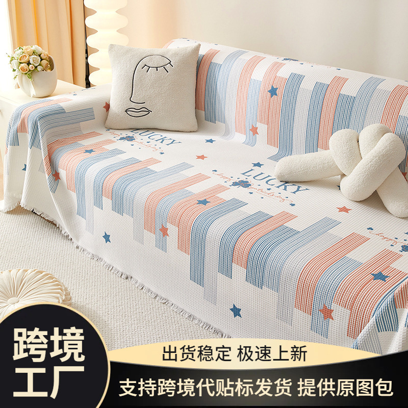 2023 baru wafel penutup sofa kain handuk gaya ins sofa selimut penutup sofa empat musim universal non-slip bantal