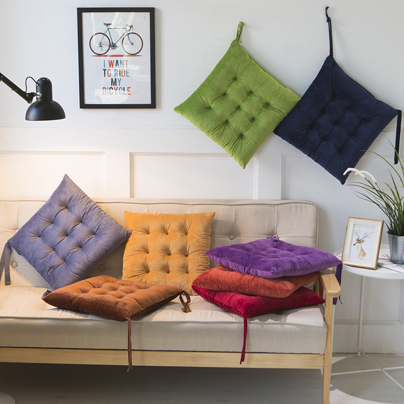 Bantal kursi beludru kristal warna solid, bantal kursi komputer kantor, bantal kursi dipertebal, pabrik grosir musim dingin