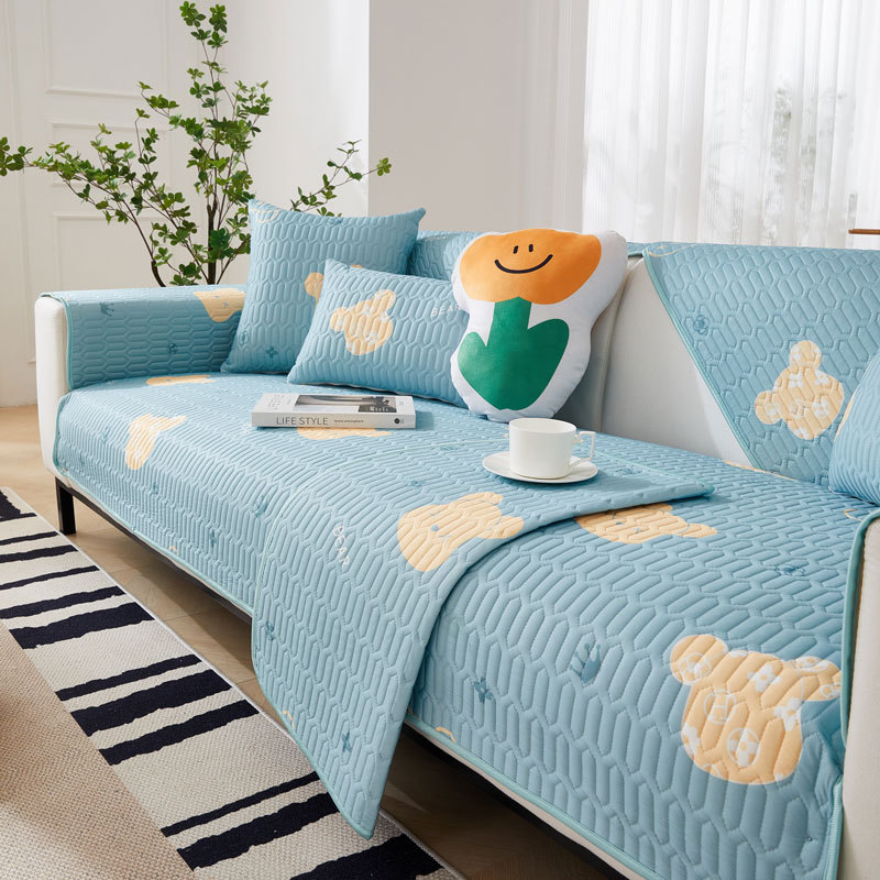 Bantal sofa lateks musim panas, bantal alas sofa sutra es sederhana modern antiselip keren, penutup kain handuk musim panas