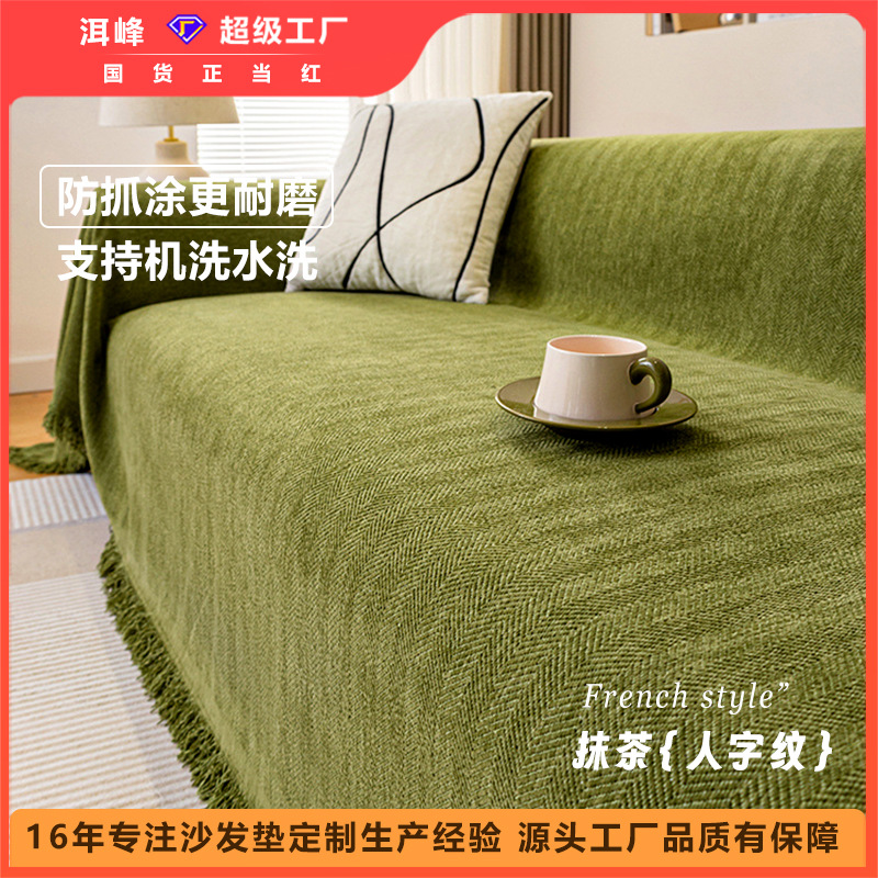 Kain penutup sofa motif herringbone, bantalan sofa, universal untuk semua musim, handuk gaya baru chenille, bantalan kursi universal.