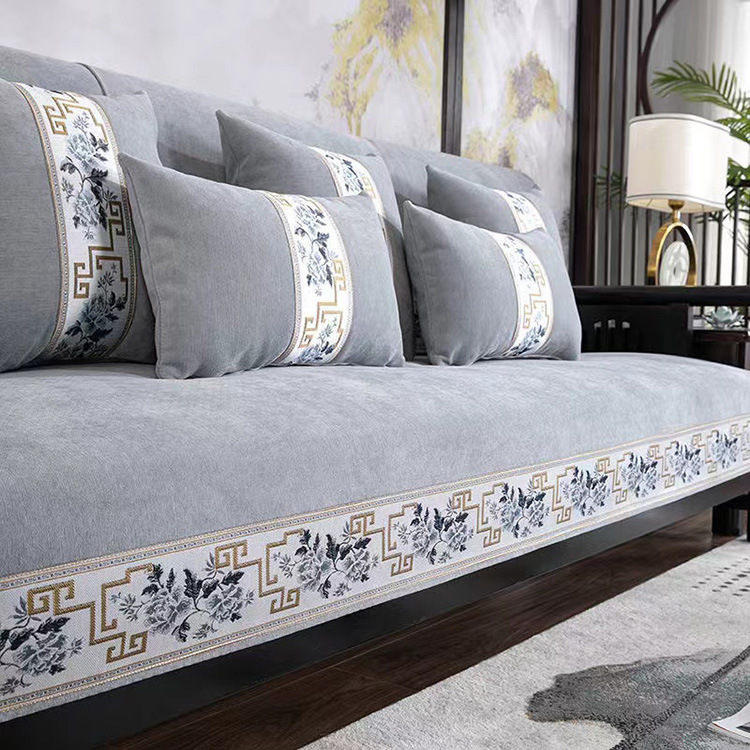 Chenille bantal sofa universal empat musim, baru Cina, warna solid kayu solid, Sarung handuk anti selip