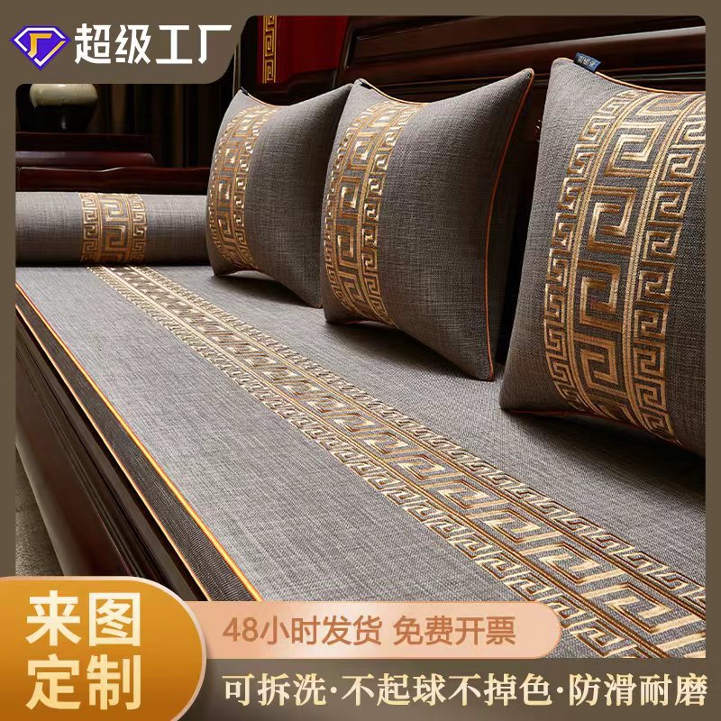 Grosir sofa bahan kayu padat, bantal sofa bahan jacquard tebal antiselip musim gugur dan musim dingin, bantal mewah untuk ruang tamu