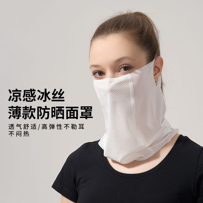 Topeng Wanita Sutra Es Model Baru Topeng Pelindung Terik Matahari Super Tipis Musim Panas Pria Olahraga Luar Ruangan Pelindung Leher Berkendara Gantung Telinga