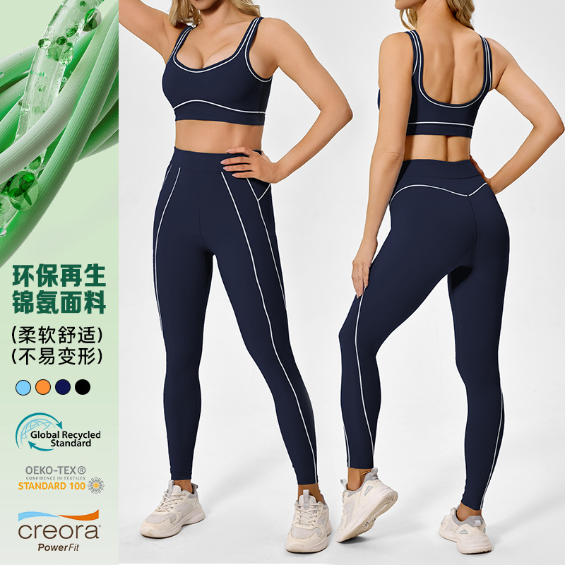 Setelan Pakaian Yoga Pinggang Tinggi Terlihat Langsing Bahan Perlindungan Lingkungan Warna Kontras Lintas Batas Eropa Amerika Setelan Olahraga Kebugaran Mudah Dipadu Padan Ketat Wanita