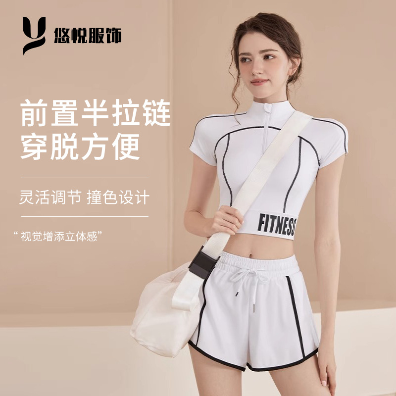 Pakaian Yoga Atasan Olahraga Terlihat Langsing Musim Panas Model Baru 2024 Wanita Pakaian Kebugaran Lari Bernapas Lengan Pendek Setengah Ritsleting